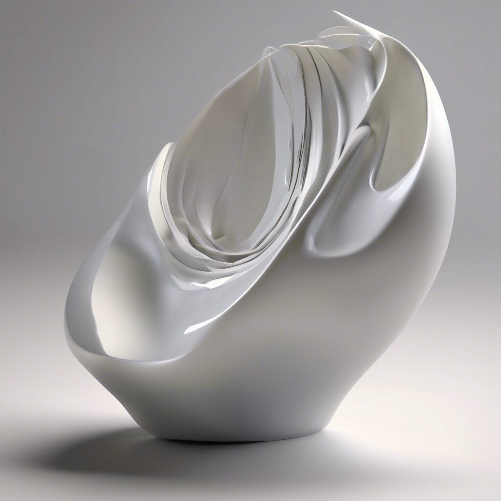 “La escultura digital 3D ‘Abstracciones Orgánicas en Frío’, captura la belleza cruda y minimalista de la naturaleza invernal, combina estructuras orgánicas derretidas con tonos monocromáticos fríos para evocar una sensación de tranquilidad y elegancia”.