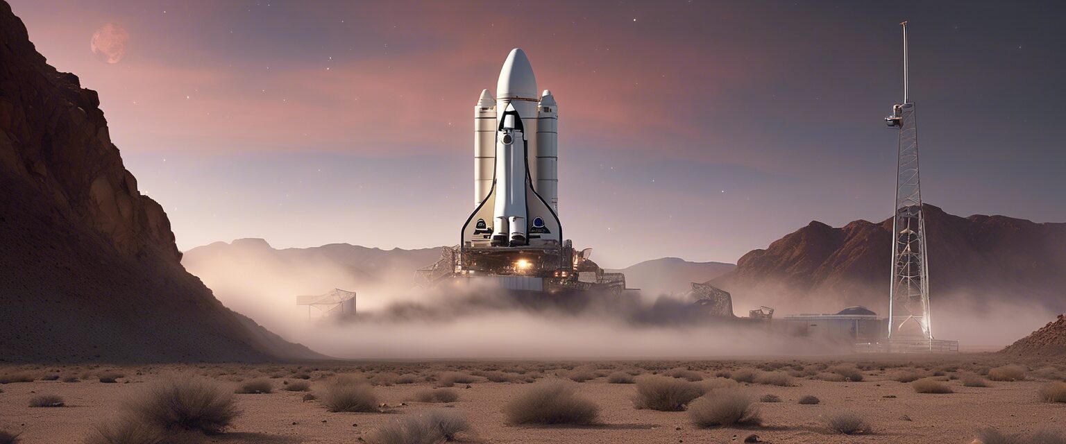 En la sede del lanzamiento, durante las primeras luces del día, un equipo de astronautas contempla la Nave Espacial Orion mientras se preparan para emprender un fascinante viaje hacia lo desconocido.