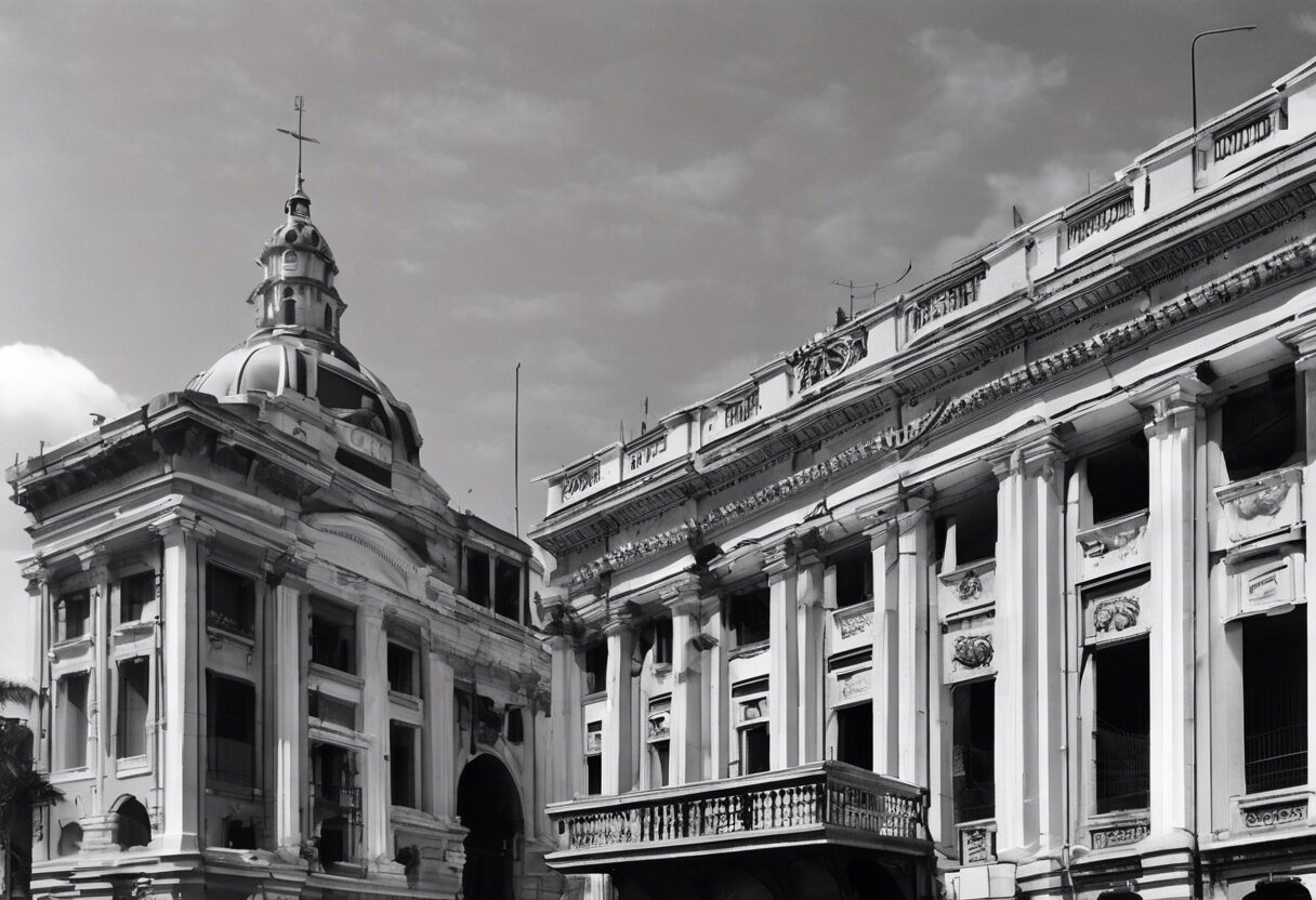 “Captura analógica de la vibrante vida en una plaza de Caracas del siglo XIX, enmarcada por la arquitectura colonial. Una testamentación en blanco y negro de un tiempo pasado, de una Venezuela vivaz.”