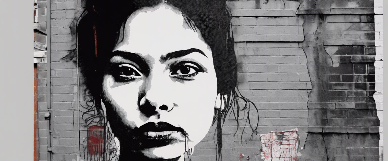 “La artista urbana VAN plasma en un muro su propia esencia con una técnica meticulosa de plantilla. A través de su retrato monocromático y los explosivos colores de fondo, nos muestra la tensión entre lucha y alegría, entre decadencia y vibrante vida en la ciudad.”