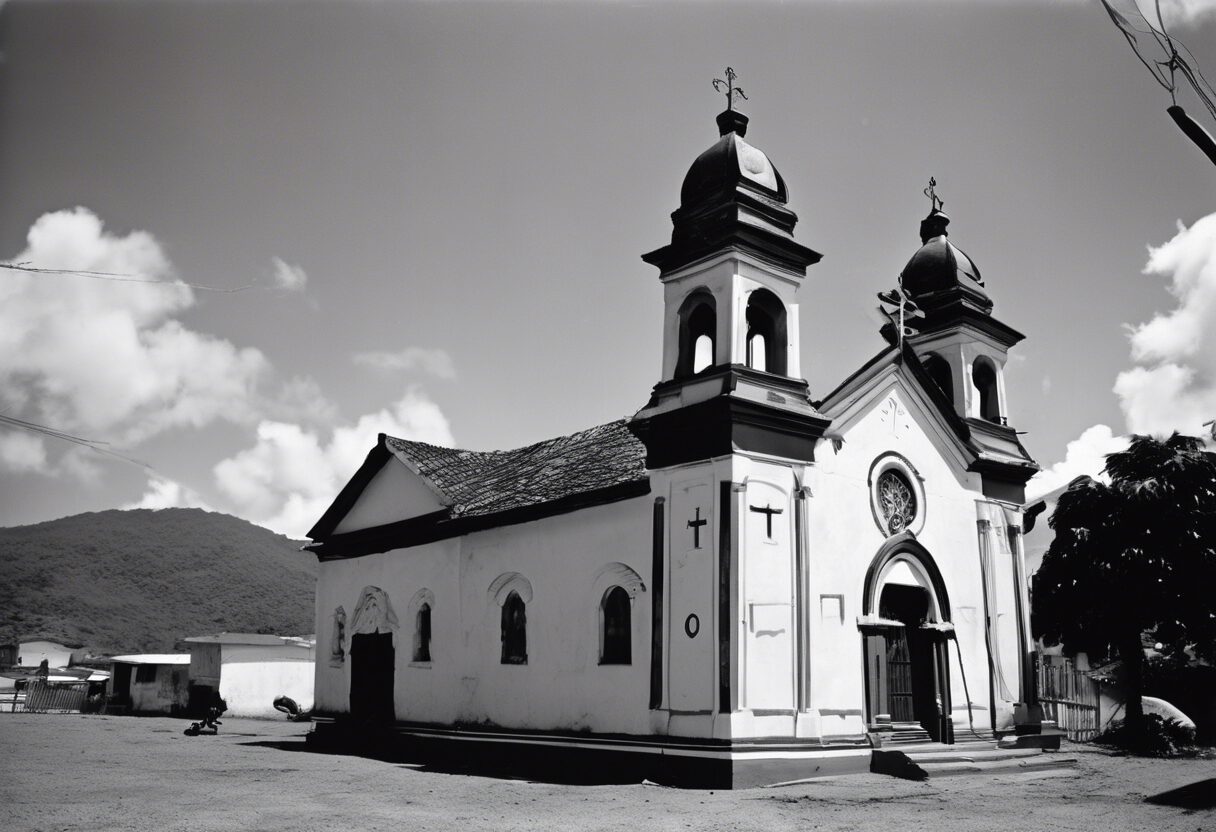 “Fotografía en blanco y negro que capta la esencia de las costumbres religiosas tradicionales de finales del siglo XIX en Venezuela. Las líneas de tiempo y devoción marcadas en el rostro de un sacerdote, junto con la fe ferviente de sus feligreses, recuerdan una época de intensa espiritualidad, inmortalizada en película analógica.”