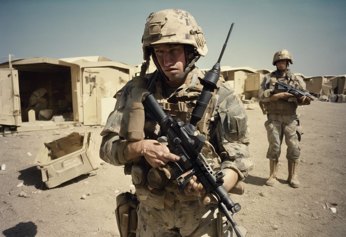 En la fotografía se captura la dura realidad de los grandes armamentos en guerra. La yuxtaposición entre avances tecnológicos y el coste humano se retrata en una imagen analógica llena de grano y con colores parcialmente saturados. Se transmite una sensación de desorden surrealista pero contenido, que encarna el poder destructivo de la guerra y la desesperación que genera.