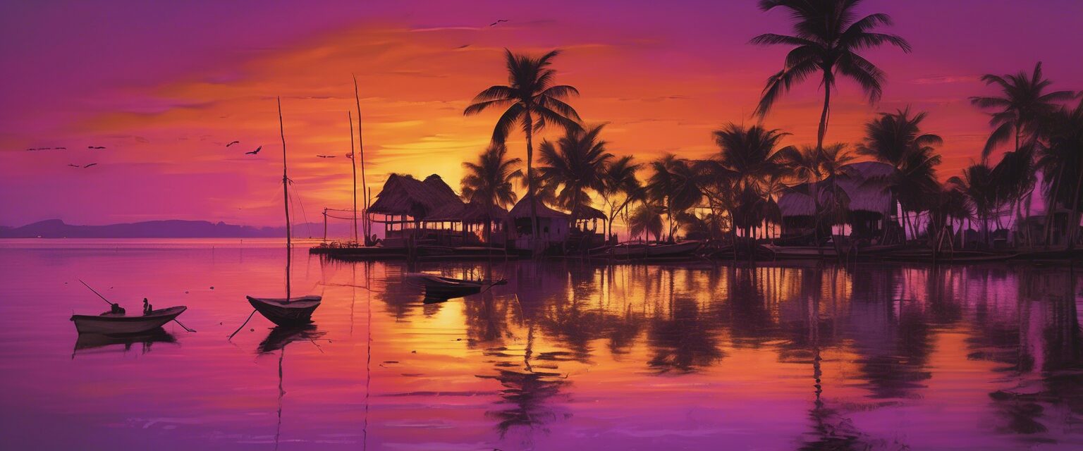 En el vibrante atardecer de Maracaibo, la inocencia infantil y la vida cotidiana de los pescadores se unen en un hermoso contrapunto, pintando un retrato vivido de la gracia de Venezuela.