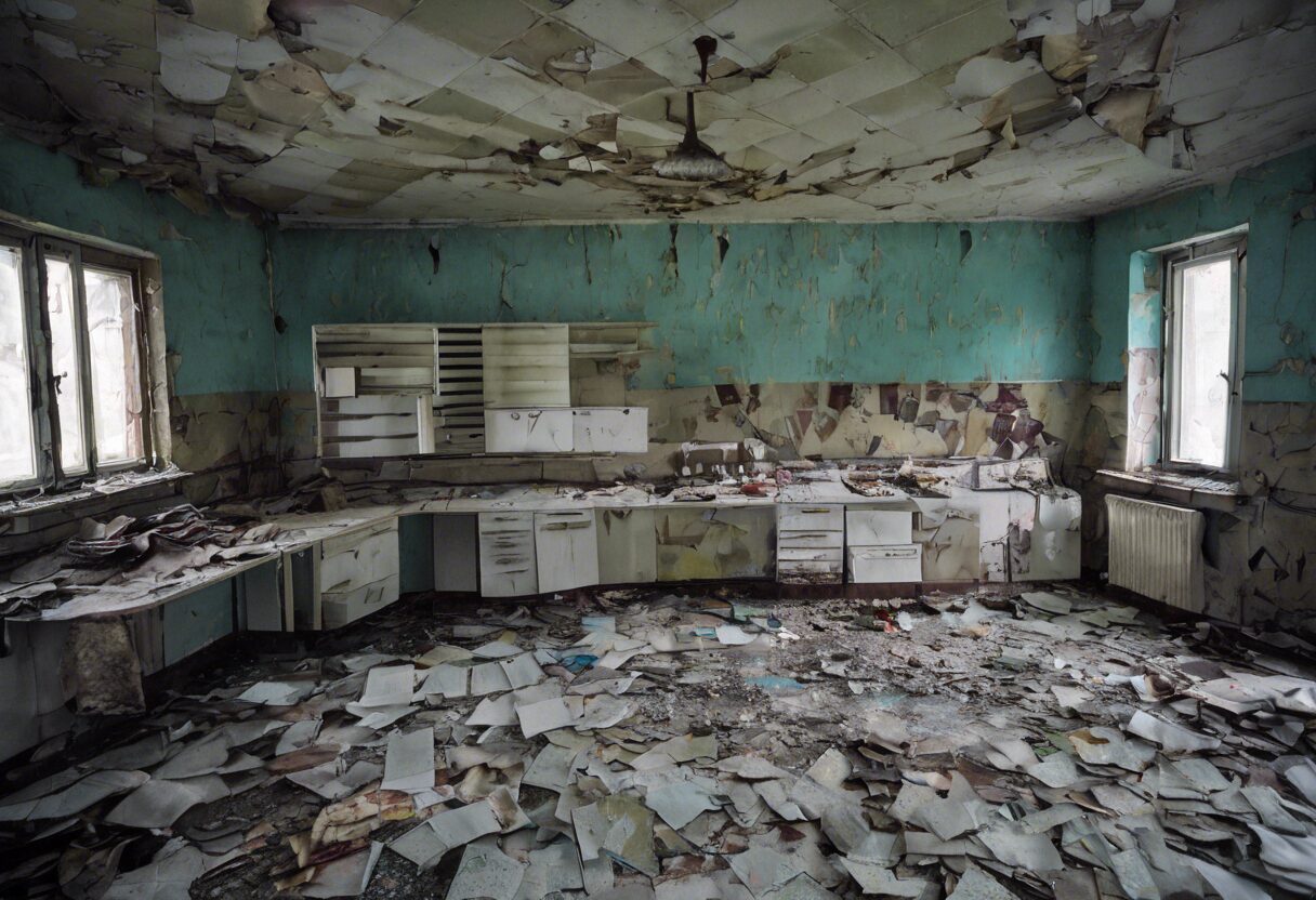 La fotografía retrata la desolación de la ciudad abandonada de Prypiat tras el desastre de Chernóbil. Los fríos colores de la imagen capturan la soledad y el silencio que reinan en la ciudad, dando vida a los edificios en ruinas que alguna vez bulliciosos, ahora son mudos espectadores de una tragedia pasada. Cada detalle, desde los vidrios de las ventanas rotos hasta las calles desiertas, cuenta una historia de pérdida, recuerdo y posibilidad. “Ecos Silenciosos: Postales de Prypiat” es un vistazo a las marcas imborrables que una tragedia puede dejar en la cara de un lugar.