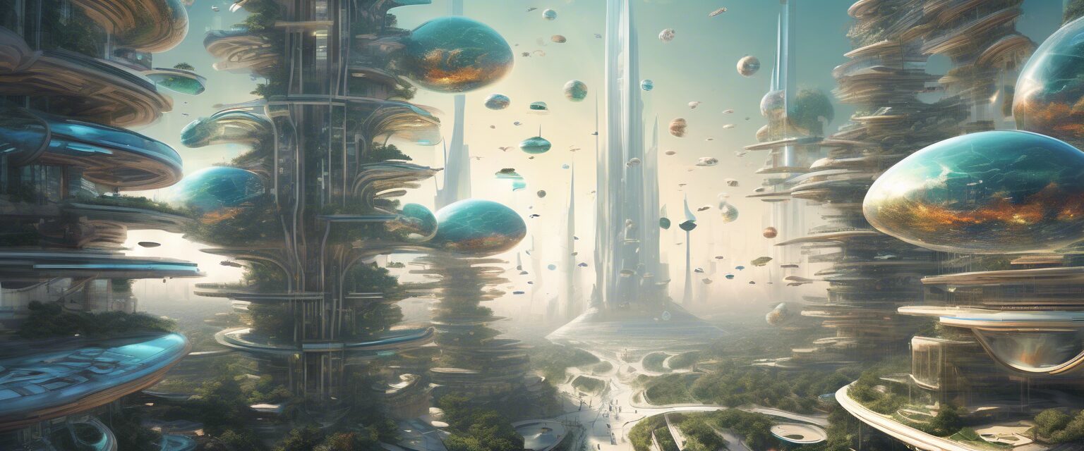 En una trama vibrante de interconexión, la ciudad-planeta resplandece con las enseñanzas del futuro digital. Cada torre, cada pantalla, cada partícula de luz representa un fragmento de información, un latido pulsante en el corazón del aprendizaje en línea.