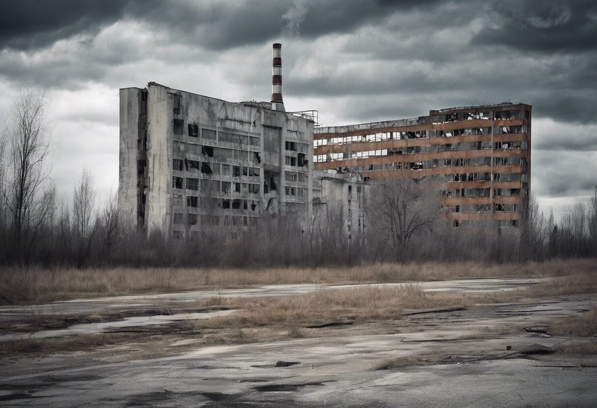 La fotografía captura la desolación abrumadora de Chernobyl, ilustrando con sus colores fríos y detalles minuciosos, las marcas imborrables del poder humano mal enfocado. Las estructuras abandonadas y en ruinas en la imagen, alguna vez bulliciosas y llenas de vida, ahora están sumergidas en un silencio perturbador y helado, hablando de la historia de una vulnerabilidad trágica y los impactos duraderos que las decisiones políticas pueden tener en la sociedad y el medio ambiente.