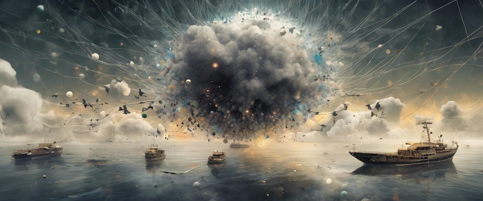 “Un mar tempestuoso de azules profundos, tierras de marrones intensos y barreras de grises sólidos, formando patrones que cuentan el desgarrador y monumental viaje de la migración forzada, capturado a través del lente del arte digital y big data.”