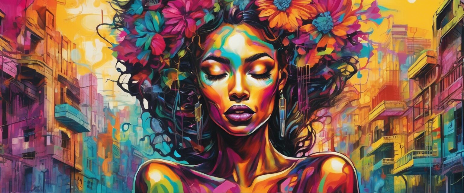 “Mural vibrante y detallado que captura la esencia de la ciudad y el concepto de ‘El Placer’, creado por la reconocida artista urbana, Van”.