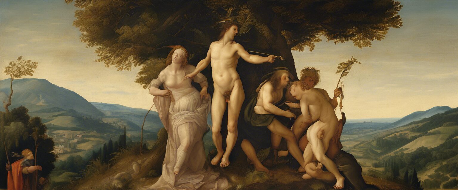 Un estudio articulado de la anatomía humana en medio de la naturaleza toscana, plasmado en las ricamente texturizadas y llegando a la vida con cada pincelada. La perfección de la forma humana se celebra en contraste con la rugosidad del paisaje y del viejo olivo.