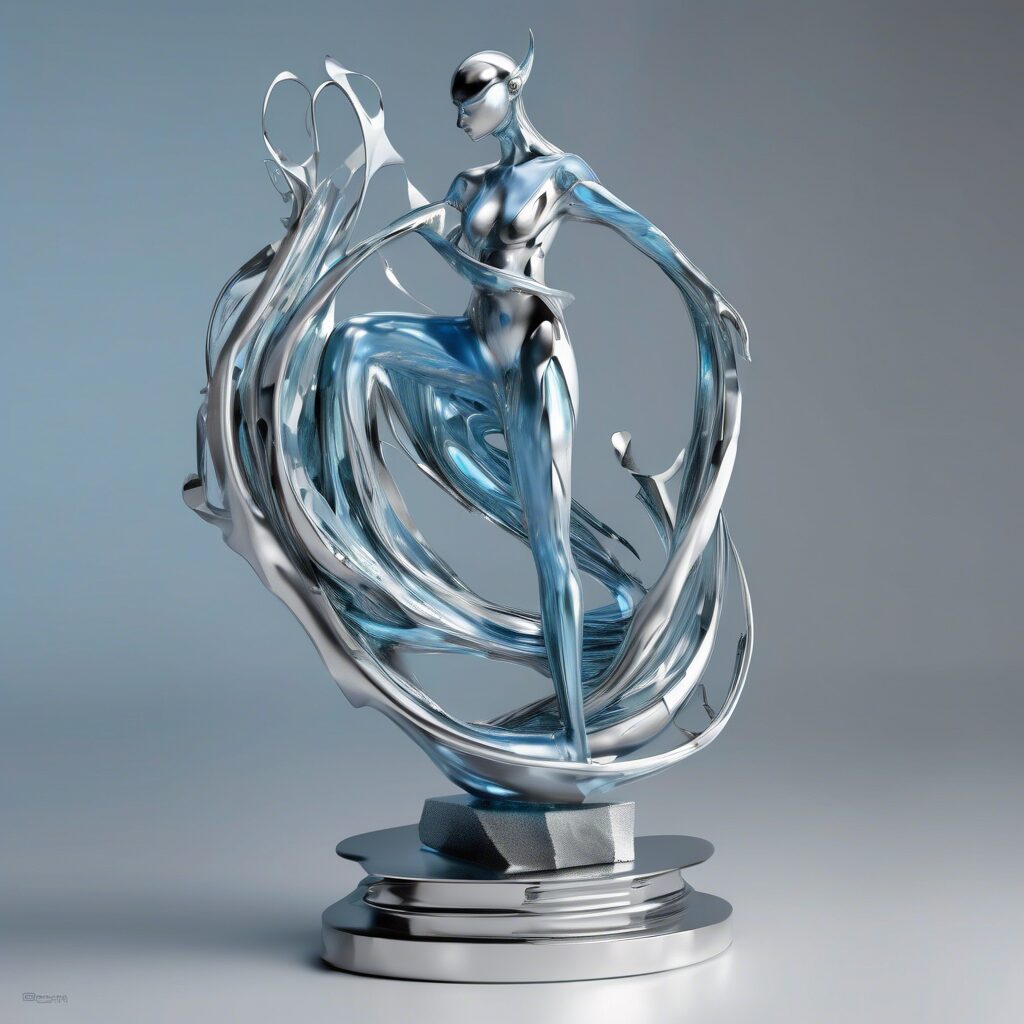 Un balance elegante entre curvas fluidas y superficies pulidas, esta obra captura la simplicidad de la tecnología a través de un acercamiento minimalista. Los tonos fríos y claros resaltan la serenidad inherente en la convergencia de lo orgánico y lo tecnológico.