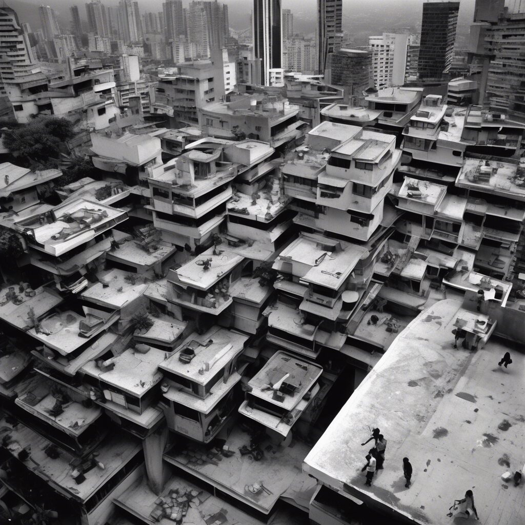 Una mirada a la coexistencia de la tradición y la innovación a través de una lente análoga, presentando una Venezuela futurista en contraste con su pasado industrial.