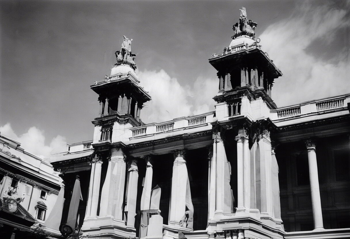 Un general del ejército se dirige apasionadamente a la asamblea nacional dentro del capitolio venezolano, en un momento decisivo de la democracia en el siglo XIX. Fotografía analógica en blanco y negro.