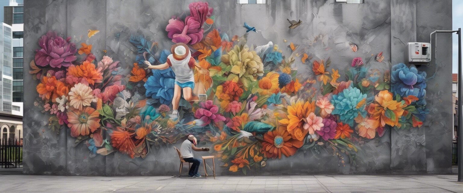 “Una explosión de color y alegría, este muro urbano transformado en un mural detalla el deleite de la vida a través de la representación diversa y vívida de los placeres humanos.”