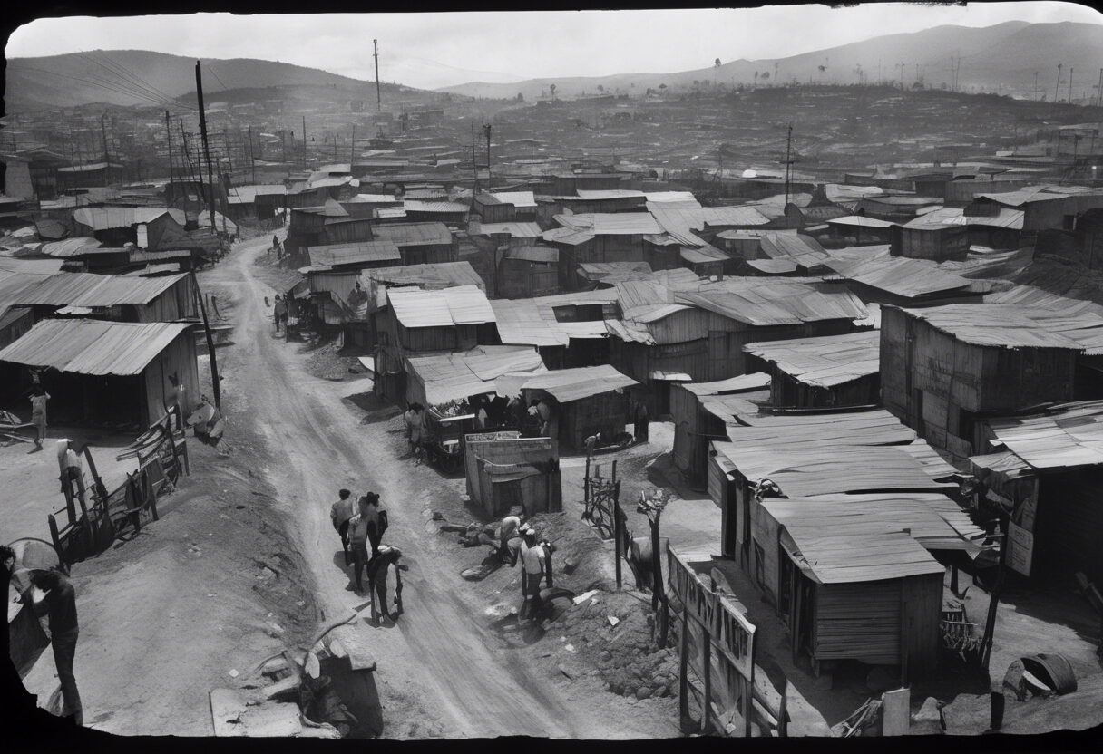 Una visión monocromática y detallada de la floreciente industria venezolana de mediados del siglo XIX, capturando la esencia cruda y resistente de aquellos que construyeron el corazón de una nación en expansión.