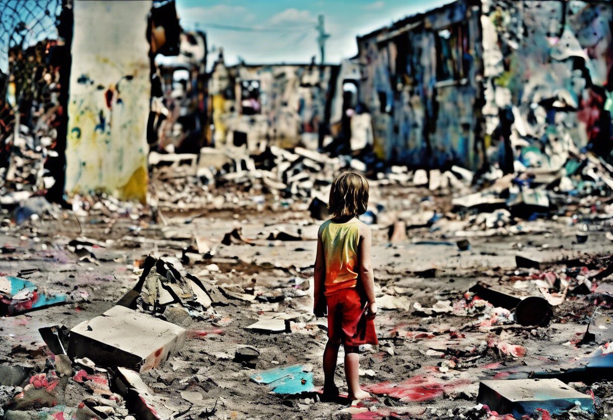 La fotografía captura el contraste entre la inocencia de la infancia y la devastación de la guerra. En vividamente impactantes y parcialmente saturados colores, se puede ver a los niños manteniendo la esperanza y la resiliencia a pesar de estar en un escenario de horror y desesperación. Los dibujos coloridos, la mirada llena de esperanza y la valentía presentes en medio del caos dan fe del espíritu indomable de los niños en tiempos de guerra.