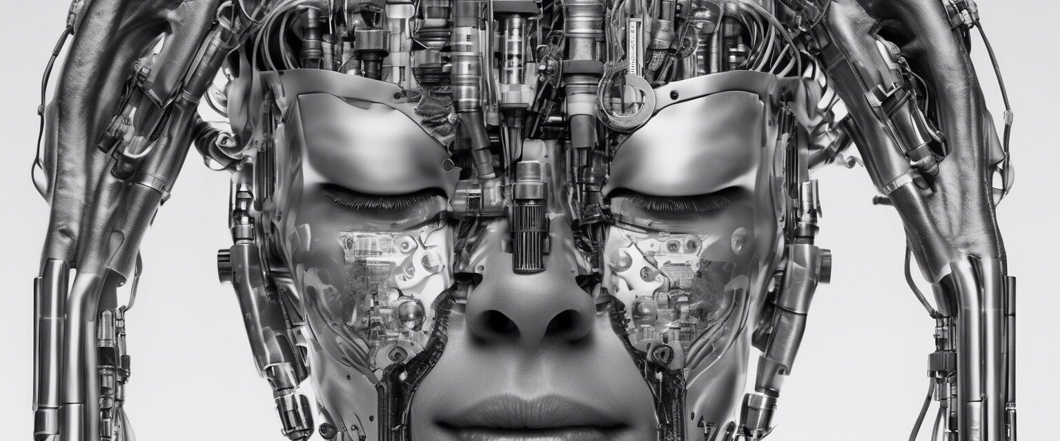 “Intersección Binaria: Humanidad y Máquina” es una representación fotográfica en blanco y negro de alta resolución que muestra un ser híbrido, mitad humano, mitad máquina. La imagen se centra en el contraste entre los sistemas biológicos y electrónicos, creando una tensión visual dinámica entre los reinos orgánicos e inorgánicos. A través de su agudo realismo y detallada composición, esta obra de arte busca provocar un profundo sentido de contemplación en los espectadores sobre la relación entre el hombre y la tecnología.