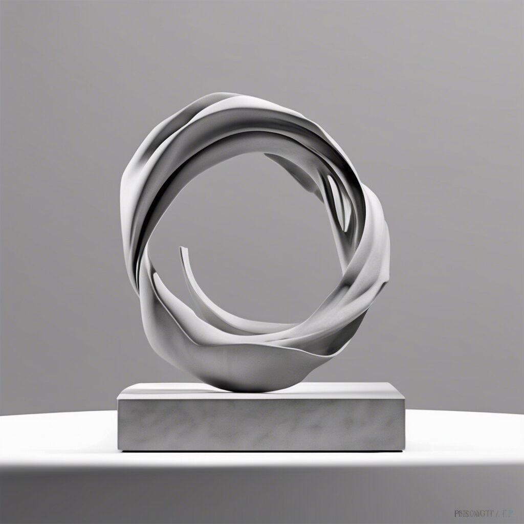 Escultura digital 3D minimalista y elegante en tonos fríos que captura la serena belleza de la vida cotidiana mediante formas orgánicas.