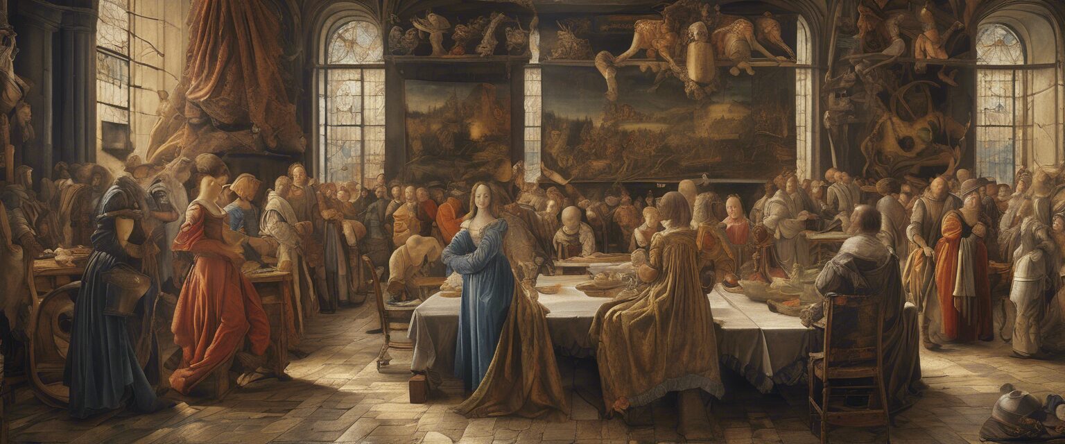 “Esta pintura al óleo revela la grandiosidad de una sociedad transhumana, uniendo elementos clásicos del arte renacentista con detalles futuristas. Las figuras semi-humanas, las estructuras icónicas y la puesta de sol brillante son testimonios de una visión profunda del futuro entrelazada con lecciones del pasado”.