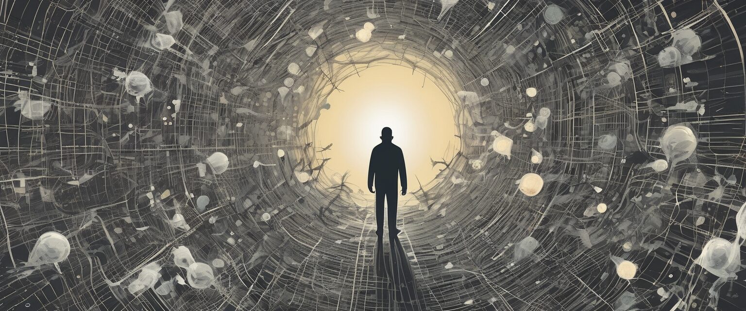 Una representación visual impactante y abstracta del desempleo, interconectada como una red de complejidad dispar, reflejada en una paleta de colores rojos, simbolizando la urgencia y el impacto negativo de este problema global.