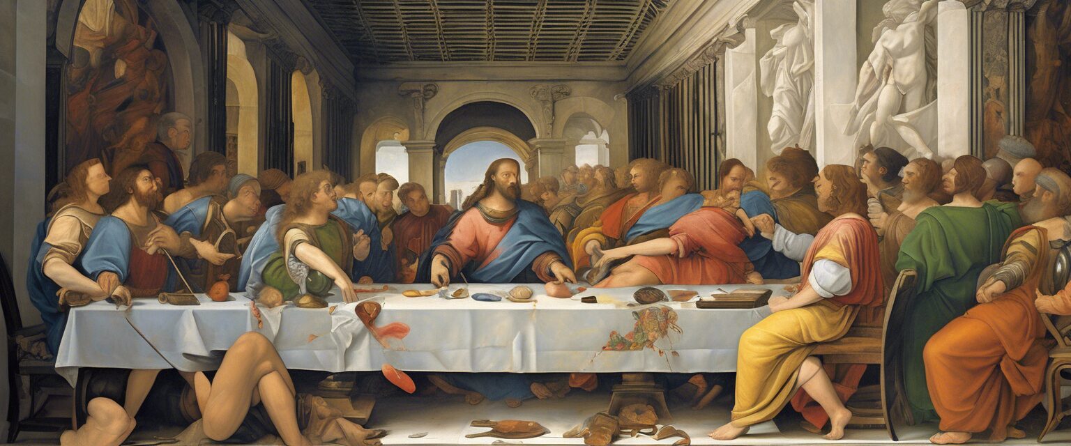 La obra retrata un foro político griego lleno de figuras semihumanas y semimáquinas, destacando la fusión de la política y la tecnología. Entre los vibrantes colores y los estampados digitales, “La Política en la Era de la Inteligencia Artificial” presenta un mundo en el que la pasión orgánica se entrelaza con la lógica calculada.