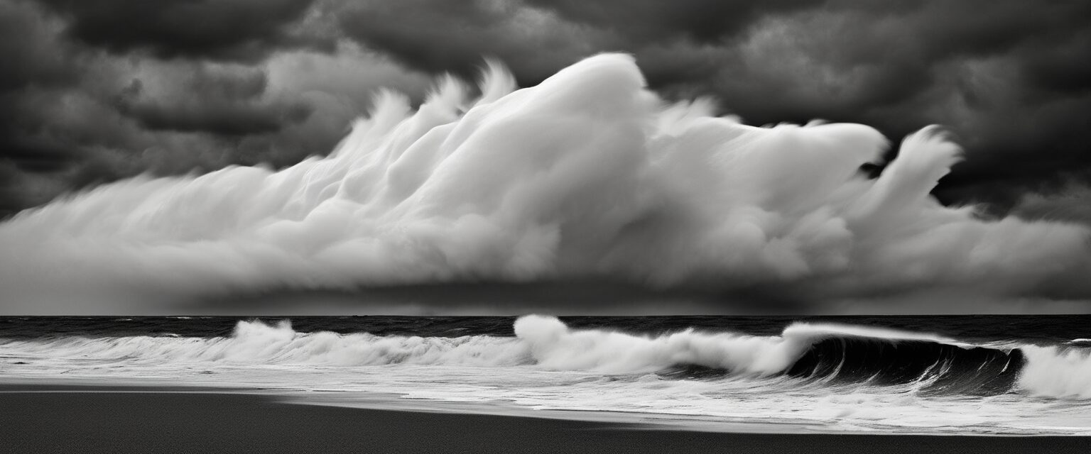 La imagen en blanco y negro “Mar de Ira” representa una interpretación visual de la ira. Representada a través de un dramático paisaje marino bajo un cielo tempestuoso, logra encapsular el poder, la intensidad y la complejidad de esta emoción. Los contrastes y detalles en la imagen sugieren tanto la energía explosiva como la latente de la ira, resaltando el impacto y la devastación que esta puede llevar consigo.