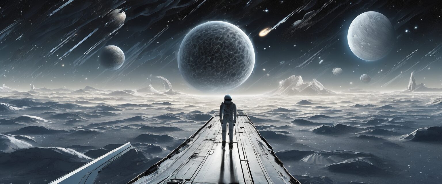 En la inmensidad del espacio, naves espaciales futuristas despliegan un ballet de luces y sombras. Unas pequeñas y ágiles, otras grandes y majestuosas, todas reflejando las luces de las galaxias a su alrededor mientras se adentran audazmente en lo desconocido, abriendo nuevos caminos para la humanidad.