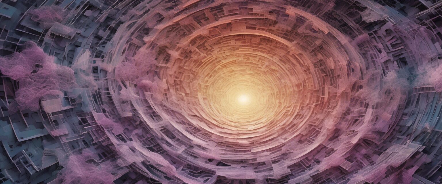 “Esta obra de arte digital visualiza la violencia doméstica a través de un laberinto de datos, creando una imagen intensamente emotiva y profundamente perturbadora. Cada línea y nodo representan puntos de datos únicos, que al unirse, ilustran la crudeza impactante de este problema global.”