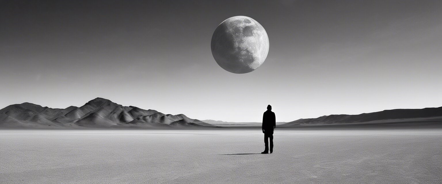 Esta fotografía en blanco y negro de alta resolución captura la paradoja de la existencia humana. A través de la representación de una figura solitaria en medio de un vasto paisaje, se pone de manifiesto nuestra pequeñez ante la inmensidad del universo, pero también nuestra grandeza al formar parte de él. “Yo soy terrícola” no es sólo una afirmación de nuestra identidad, sino también un recordatorio de nuestra conexión con el entorno que nos rodea.