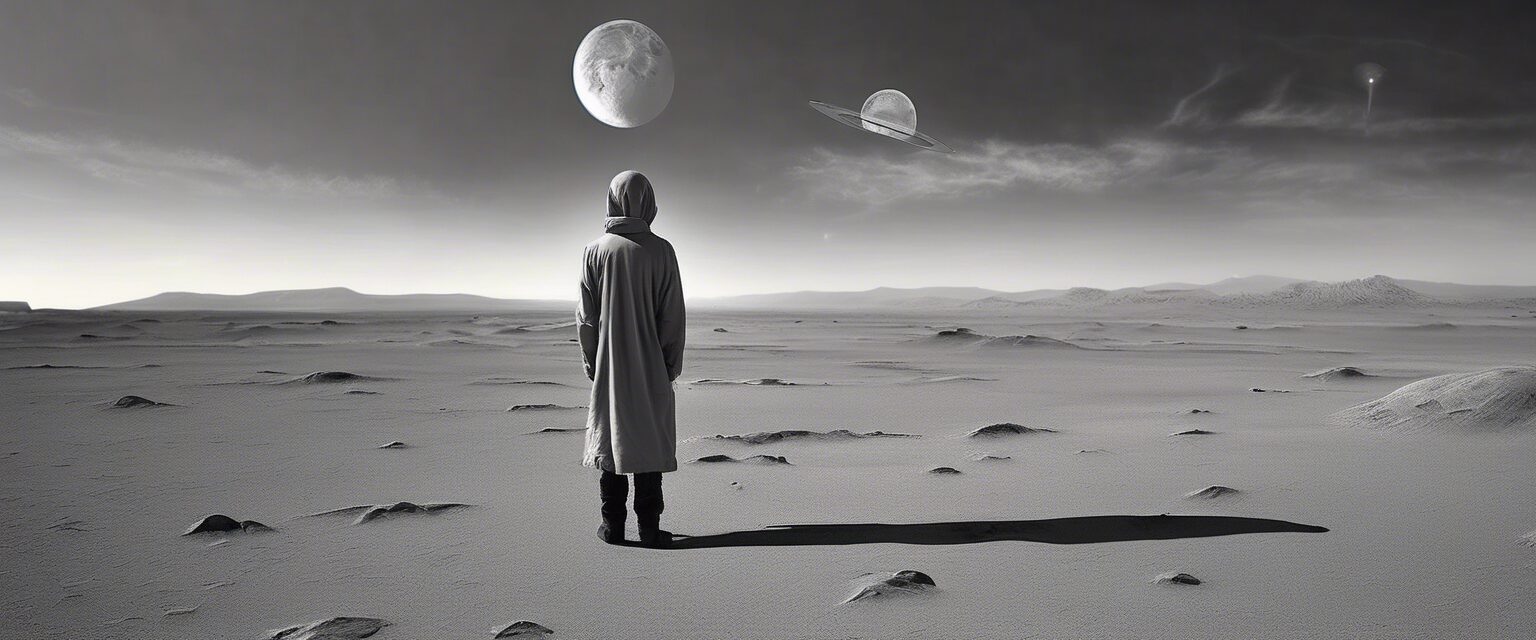 El reconocido fotógrafo Febo presenta “Postextraterrestre: Un viaje de Tiempo y Espacio”, una obra maestra que transita entre lo conocido y lo desconocido. Con solo una figura solitaria en un paisaje terrestre y un cielo lleno de galaxias inexploradas, se logra una yuxtaposición entre el pasado, el presente y el futuro, y entre la Tierra y el universo desconocido. El resultado es una impresionante imagen en blanco y negro de alta resolución que cobra vida y nos inspira a preguntarnos: ¿Qué significa ser “postextraterrestre”?
