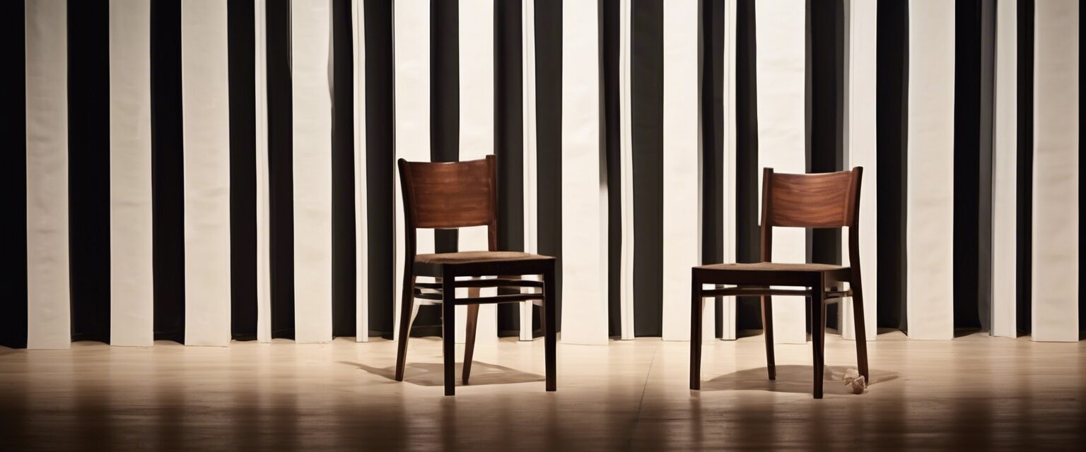 “Fotografía minimalista captura el corazón palpitante del teatro y las artes escénicas – la escena establece una dialéctica visual entre presencia y ausencia, dinamismo y quietud, luz y sombra.”