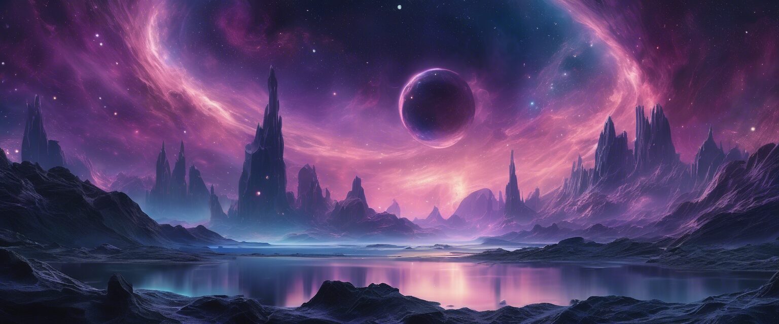 Una visión futurista de tres naves espaciales flotando en el vacío del espacio, dominadas por un cielo teñido de azul y púrpura. Las luces de estrellas distantes se reflejan en sus superficies plateadas mientras los astronautas realizan caminatas espaciales, todos dan testimonio de una civilización avanzada que ha conquistado la vastedad del universo.