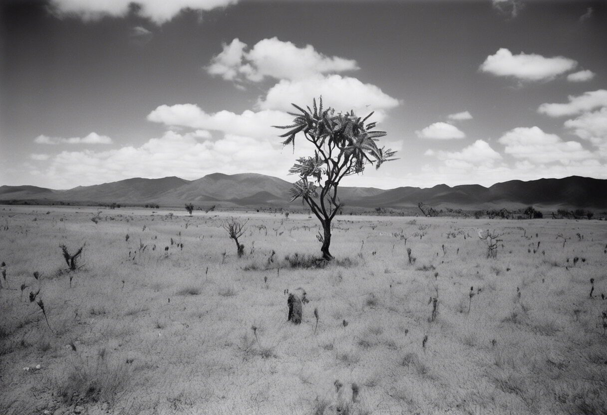 Inspirada en las técnicas del siglo XIX, esta fotografía captura un paisaje venezolano formado por la frondosa flora y fauna, las vastas llanuras y lo contrastes sociales. Imágenes en blanco y negro que transmiten la historia y las características de una época de transformación.