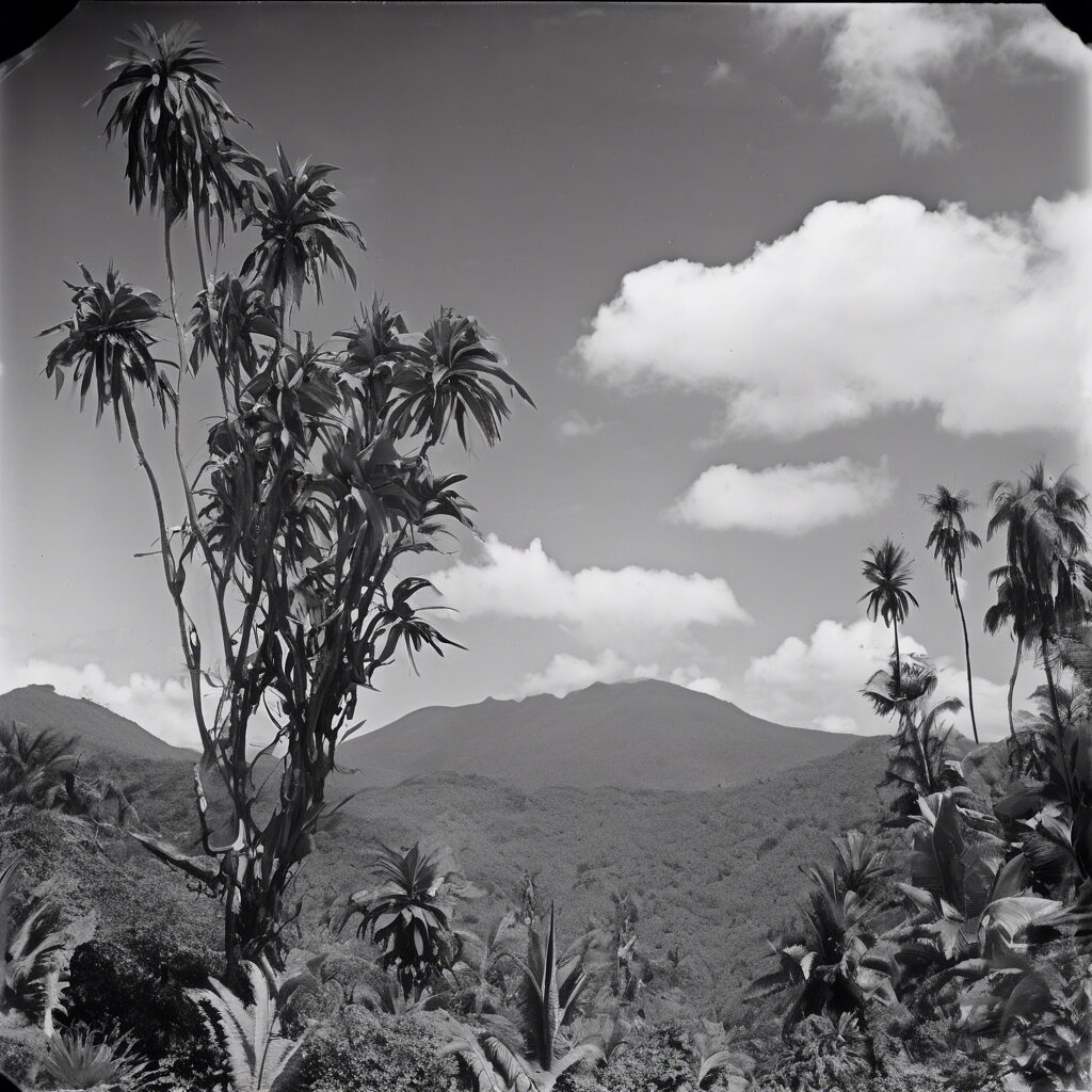 En la profundidad de la naturaleza venezolana, una bomba de petróleo arcaica en blanco y negro se erige como testigo silencioso del pasado en un paisaje futurista. El cielo estrellado y la vegetación meta-orgánica narran una historia de esperanza en una versión futura de Venezuela.