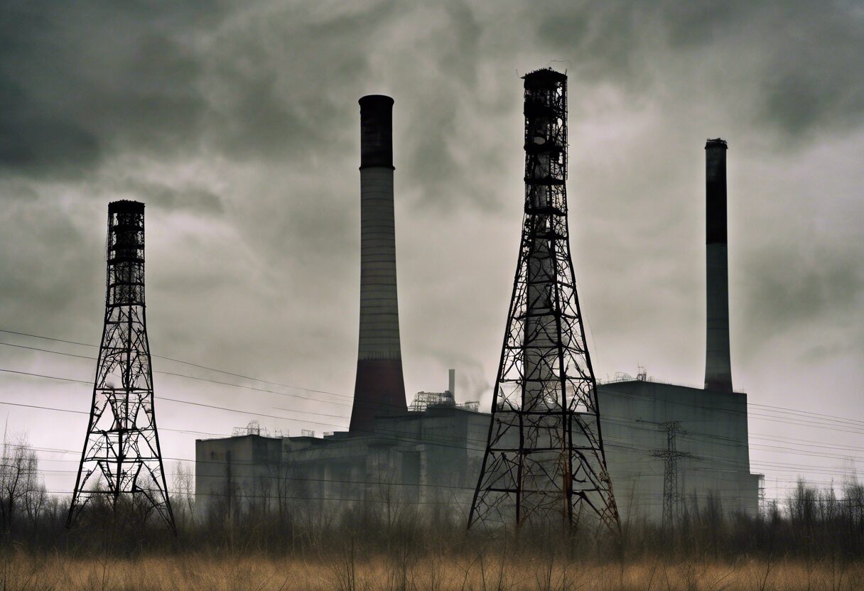 La fotografía muestra la imponente silueta de los restos de la planta de energía de Chernobyl, marcados contra un frío cielo nublado. La soledad y desolación del entorno se contrasta, sin embargo, con la presencia pujante de vida silvestre que ha retomado la zona. A través de tonos fríos y desaturados, la imagen transmite una fuerte sensación de la historia pero también de resiliencia y esperanza.