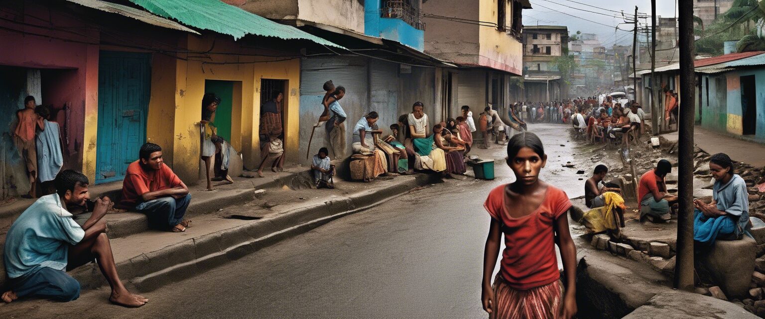 Niños jugando fútbol bajo el cielo desvanecido de una Venezuela luchadora. A través del desgaste y la adversidad, sus sonrisas radiantes muestran el espíritu de esperanza de la nación.