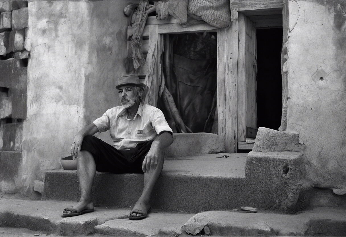 “Vida cotidiana en un bullicioso mercado venezolano del siglo XIX. Las interacciones sociales son capturadas de manera auténtica, poniendo en evidencia la tensión entre el paisaje urbano y la belleza natural de las montañas andinas. La fotografía, tomada en película, resalta las emociones crudas y las duras realidades de la época”.