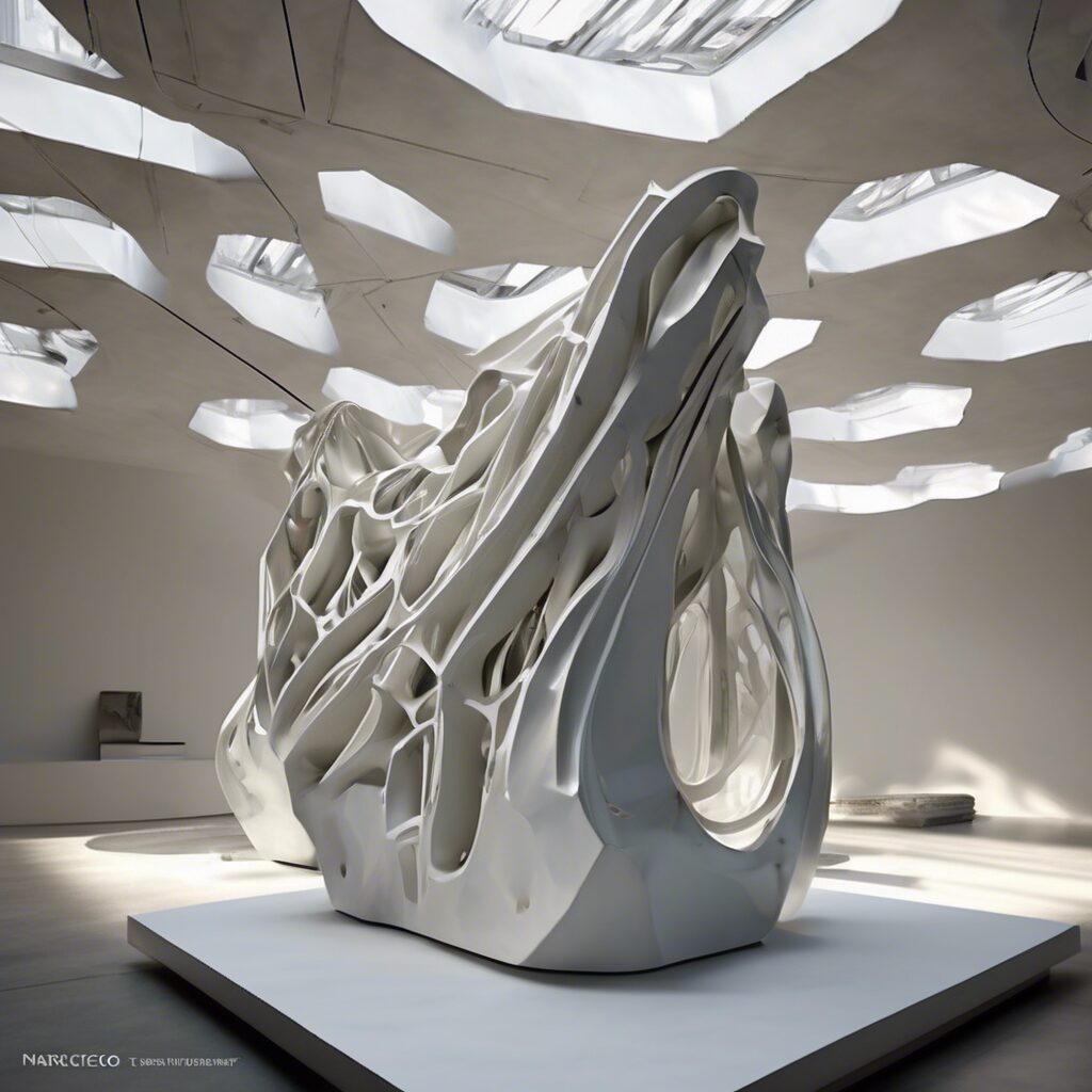“Sutil y majestuosa, la ‘Sinfonía Tecnológica: Evolución Orgánica’ de Mark captura la esencia armoniosa de la tecnología a través de formas orgánicas y colores tenues. Una elegancia minimalista que demanda admiración sutil y respetuosa.”