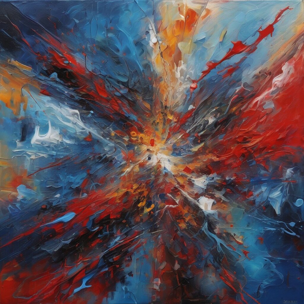 Esta arrebatadora obra abstracta de Berta, titulada “Transcendencia a lo Posthumano”, retrata un viaje vibroso desde la existencia humana a la existencia posthumana con vibrantes colores, trazos firmes y texturas experimentales marcadas. Cada acento de color, cada línea audaz y cada textura áspera narra un cuento de evolución y adaptación, representando la trascendencia etérea y digital de lo humano.