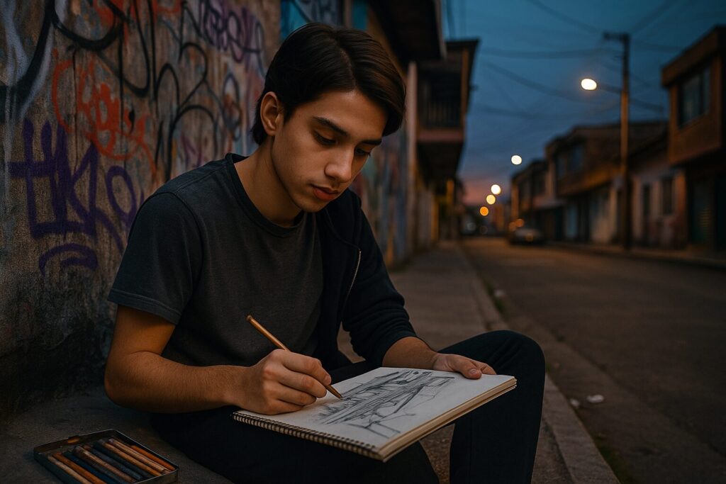 Para mí, el momento más significativo que reveló mi intención de ser artista fue siendo muy pequeño. Yo tengo formación desde los seis años; estuve en academias de arte. Y fue un momento en que, al dibujar una mano, muy sencillo, haciendo el contorno de mi mano y haciéndole unas sombras, al quitar la mano me di cuenta que era algo que se veía muy 3D. Ese fue un gran impacto y me dio toda la señal para poder hablar desde ahí, para entender mi realidad y todo lo que me rodea.