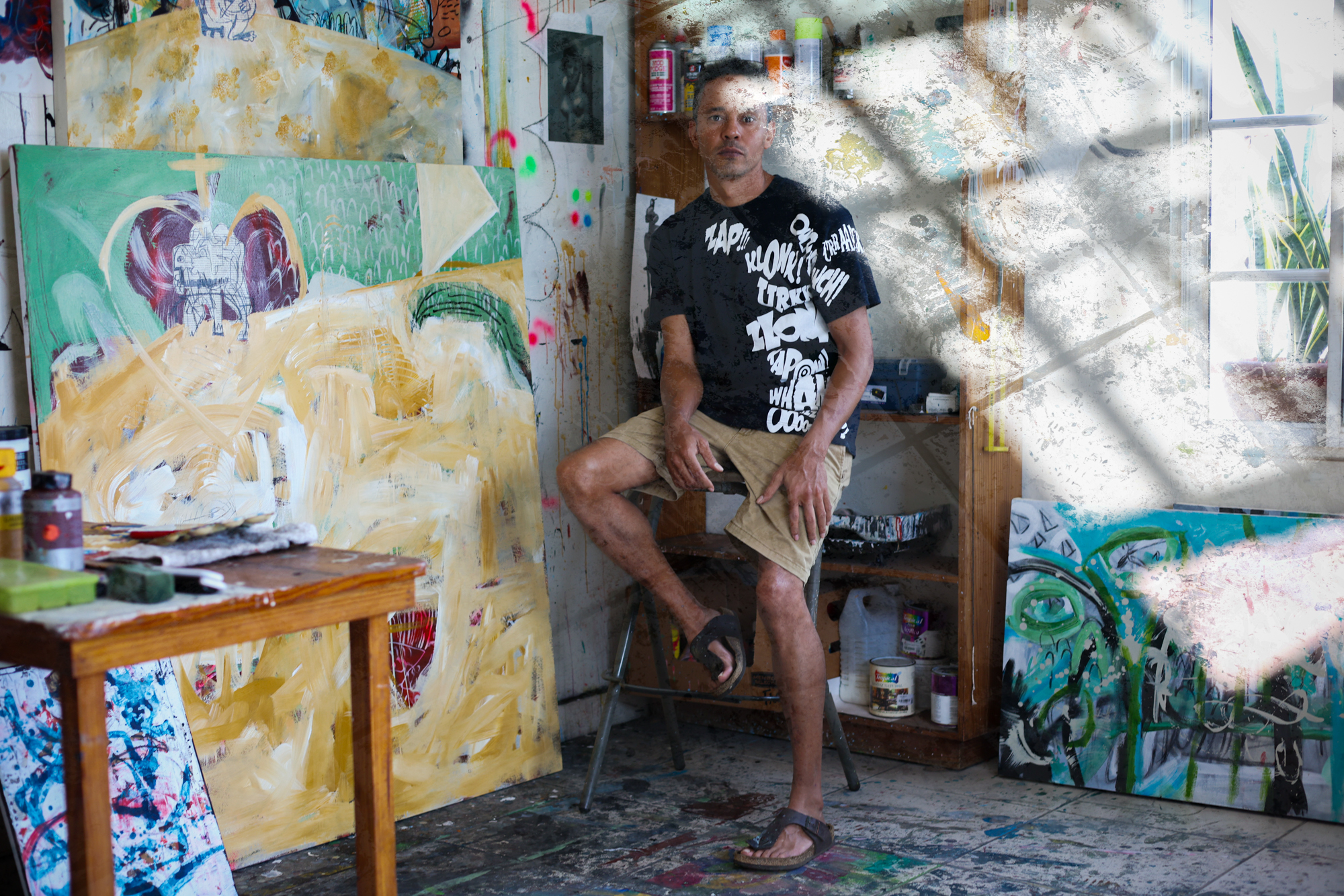 Me han dicho que mis colores eran muy haitianos. No entiendo muy bien qué quiere decir esto, pero varias veces me lo han dicho. En realidad, en Haití, entre cuando nací y cuando me fui, no había mucho acceso a museos, al arte haitiano. Y cuando empecé a poder ir a museos, era un adolescente medio rebelde y no quería. Entonces cuando llegué a República Dominicana, me rebelé y dije que no quería nada que ver con arte. Mi interés por el arte llegó bastante tarde. Entonces la influencia haitiana en mis pinturas no la reconozco ni yo.